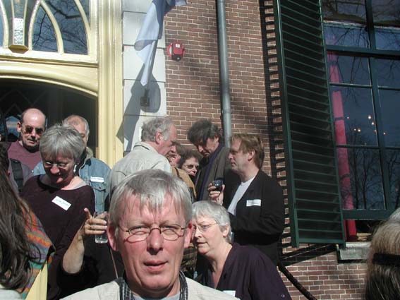 Ger Jan Bömer , op bordes o.a. Ton van Woudenberg, Wilma Jansen, Carel Muller, Pieter Spans